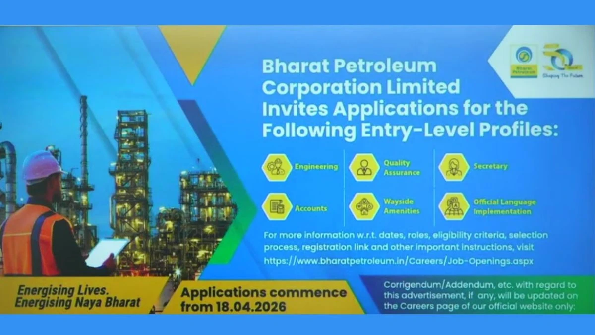 Candidates can apply online through the official BPCL careers portal starting from April 18, 2026.